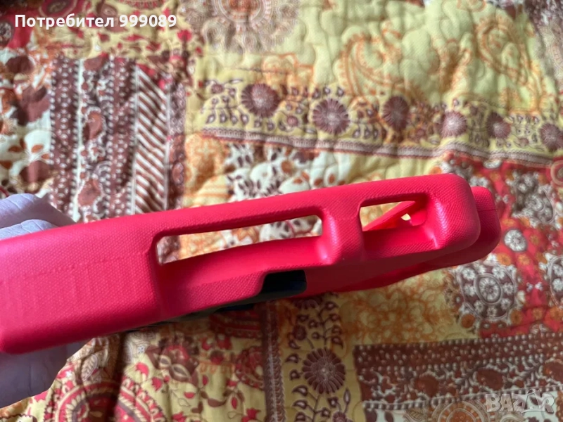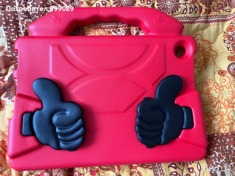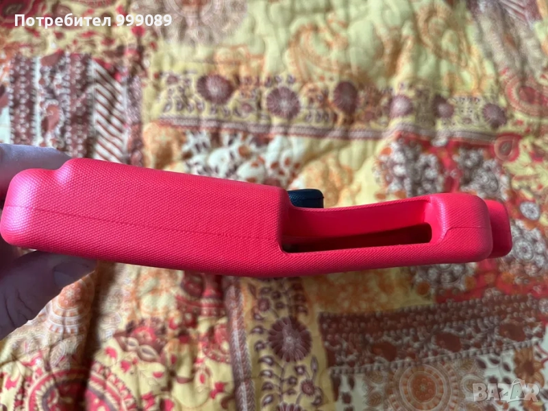 Материал: мека лека обемна гума, не знам как другояче да го опиша. Чисто нов, деформиран при транспорта, но все пак е гума, ще се изправи. Исках да си сложа в него таблета за диагностика, но с тези ръчички отзад изглежда малко несериозно. Купен за 20 лв., продава се за 10 лв.