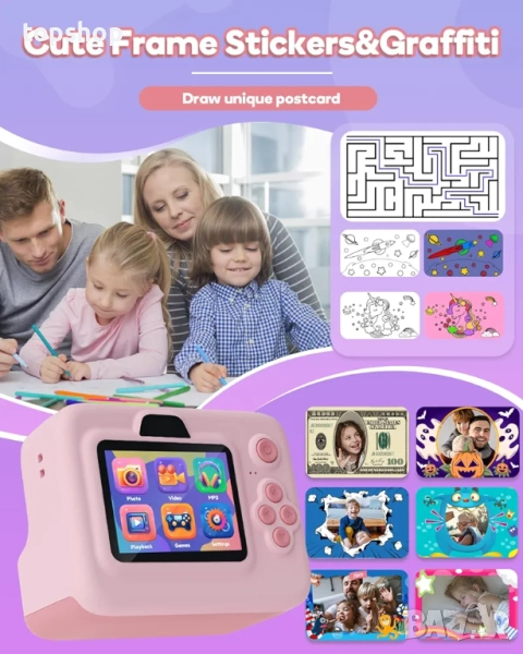 Многофункционален детски цифров фотоапарат: Мини фотоапаратът Dylanto има незабавен печат, 2,4-инчов голям екран, 1080P видео, 16x цифрово увеличение, светкавица, time-lapse фотография, непрекъснато снимане, игри, филтърни рамки, mp3. Фотографията, рисуването, музиката, видеото и игрите са любимото забавление на децата, а фотоапаратите с тези функции могат да стимулират желанието и интереса им към фотографията.