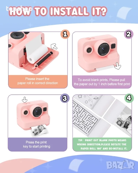 Креативна камера за моментално печатане за деца: Детският цифров фотоапарат Dylanto с функция за моментално печатане може да прави цветни снимки, като същевременно бързо отпечатва черно-бели снимки. Комплектът ни с камера включва 3 ролки хартия за печат, 32GB карта памет, връзка за връзка, USB Type-C кабел. Децата могат да правят интересни снимки и графити по всяко време и навсякъде, което им позволява да се насладят на забавлението от фотографирането.