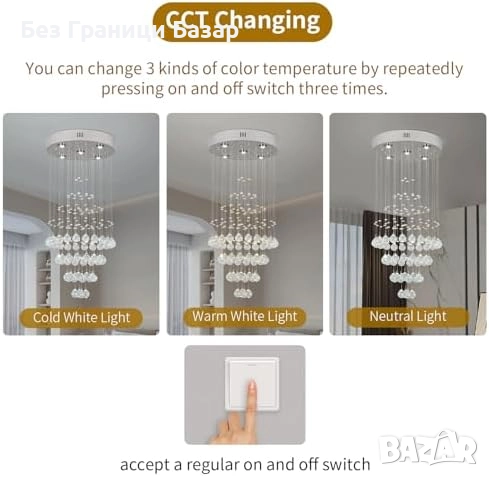 Прозрачни K9 кристали и хромирана стомана за впечатляващ блясък