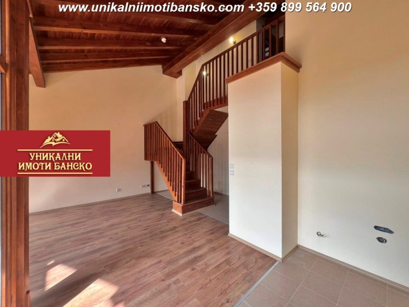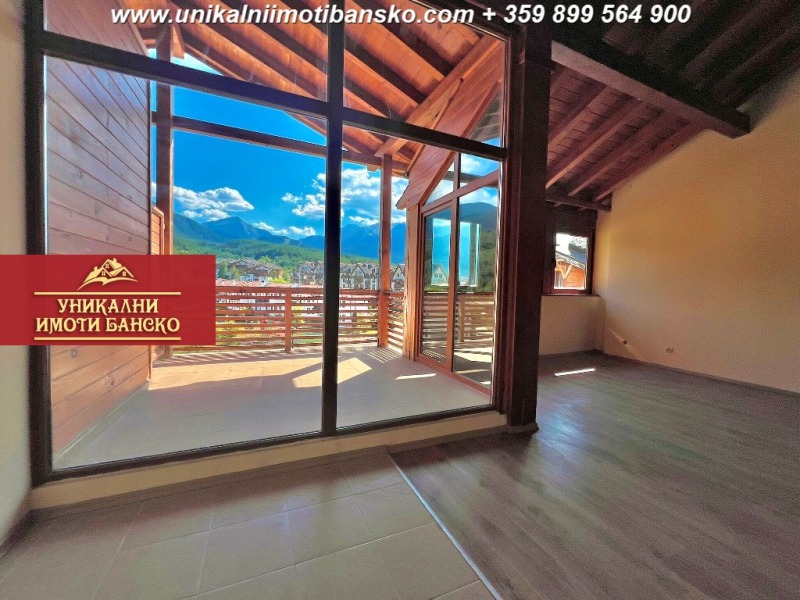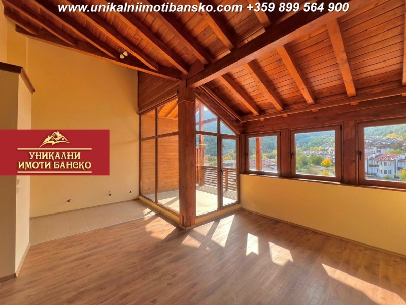 www.unikalniimotibansko.com БЕЗ КОМИСИОННА ОТ КУПУВАЧА! Агенция Уникални Имоти Банско предлага за продажба НАПЪЛНО ЗАВЪРШЕН И ГОТОВ ЗА ОБЗАВЕЖДАНЕ ПРОСТОРЕН ТРИСТАЕН АПАРТАМЕНТ - МЕЗОНЕТ, РАЗПОЛОЖЕН В КОМПЛЕКС В НЕПОСРЕДСТВЕНА БЛИЗОСТ ДО ' НАЦИОНАЛЕН ПАРК ПИРИН'! УНИКАЛНА ГЛЕДКА КЪМ ПЛАНИНАТА! ОТДЕЛНИ ПАРТИДИ ЗА ТОК И ВОДА! Апартаментът е разположен на 5 етаж, като е съставен от две нива, като на първото ниво има една просторна всекидневна, в която има оставени изводи за монтаж на кухненски бокс, като стаята разполага с големи прозорци и просторна покрита тераса, от която се разкрива уникална гледка към цялата Пирин планина. На това ниво има и баня, която разполага с тоалетна. На второто ниво има още една баня, която разполага с вана и тоалетна и две просторни спални, които са самостоятелно и НЕпреходно разположени. Жилището е много светло и топло! Комплексът работи целогодишно, като на територията му има места за паркиране (безплатно), има рецепция, охрана и извозване до ски лифта с бусчета зимата. Партидите за електричество и вода са отделни! Страхотна инвестиция в имот, който може да ползвате за постоянно живеене, отдаване под наем или ваканционни посещения!