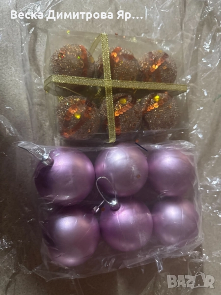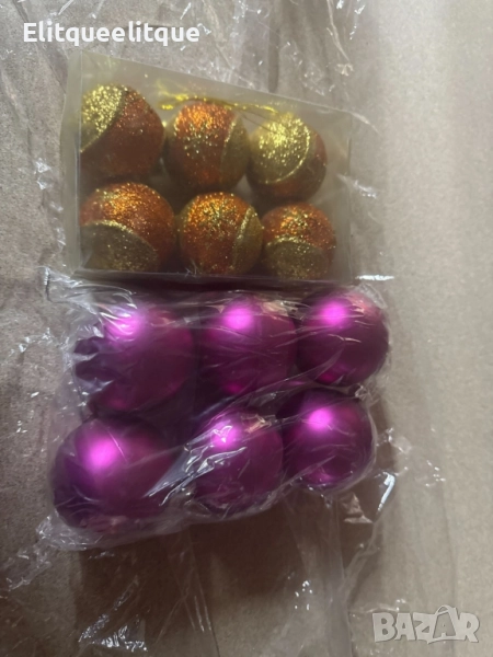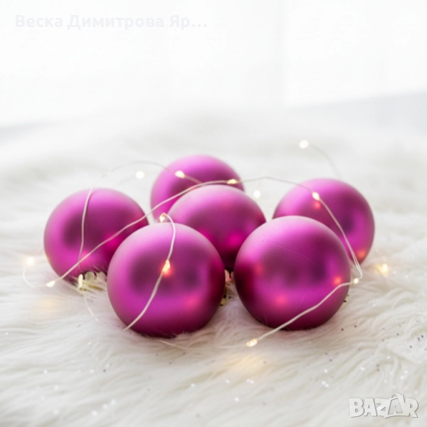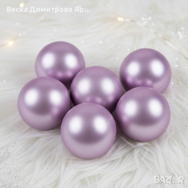 Комплект перлени коледни топки – 6 броя в различни цветове + подарък 6бр златисто блестящи топки → Обява 52228147