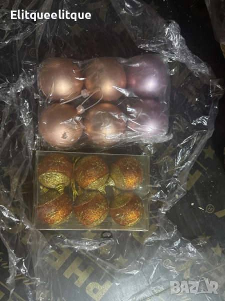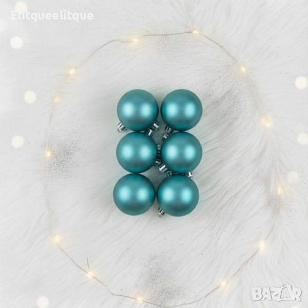 Комплект: 6 броя+6бр по-малки подарък; Цветове: мента, шампанско, лилаво, лавандула; Повърхност: матова/перлена; Приложение: коледна елха, гирлянди, венци, маси, витрини.