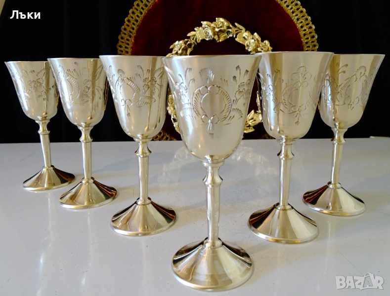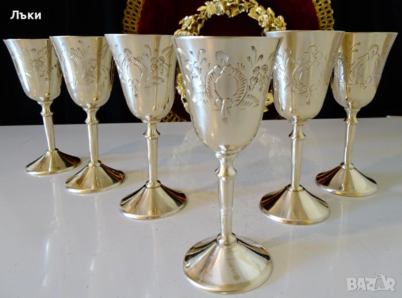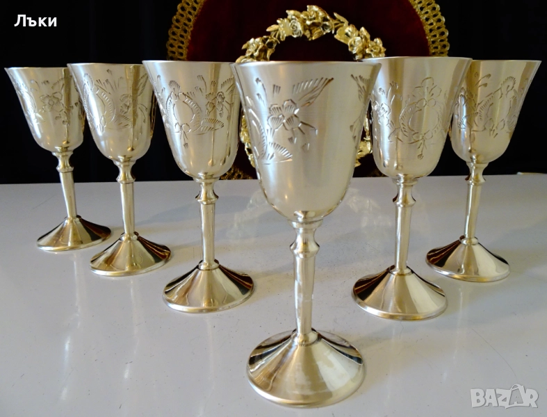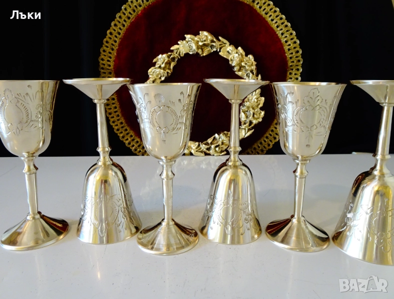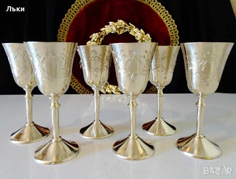 бронз.Декорирани с прецизни релефно гравирани барокови орнаменти и цветя.Чашите