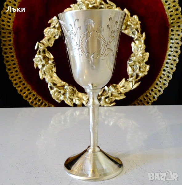 Стари бронзови чаши на високо столче,за