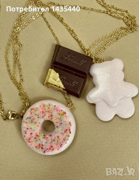Колие от полимерна глина на Bibi Kopoeva Jewelry. Ръчно изработено от дизайнерката Биби Копоева. Колието е с тройни верижки от стомана с различна дължина в златист цвят. Много красиво и закачливо!