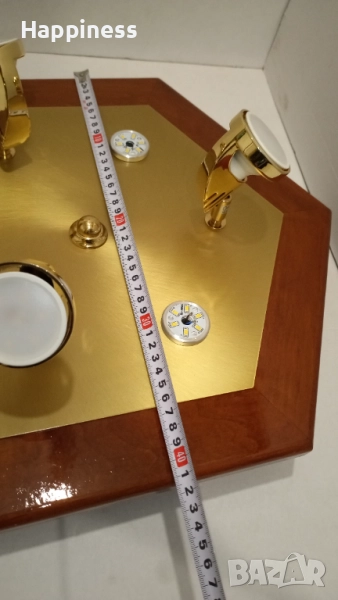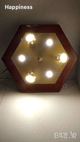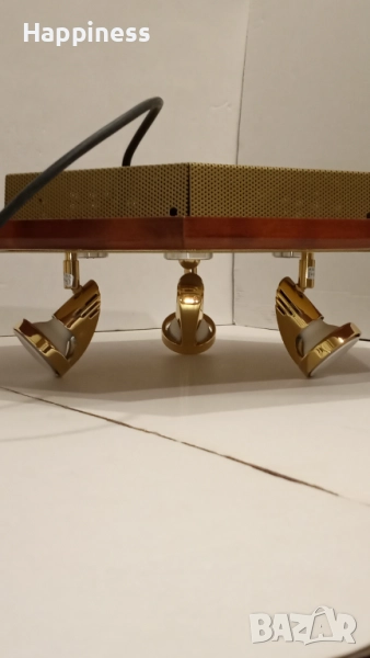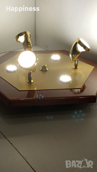 Лампа за таван с метални лунички въртящи и дървена рамка → Обява 52229805