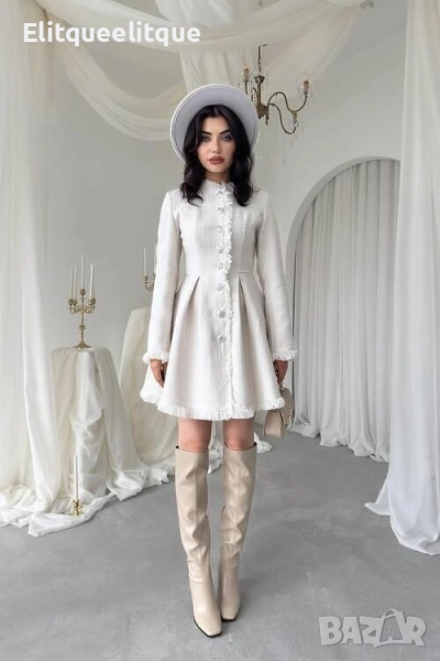 ✨ Елегантна мини рокля за специални моменти ✨ Представям ви стилна мини рокля от марката Zenoa — комбинация от класически дизайн и модерна женственост. Характеристики: • Кройка: A-line / клош, с подчертаната талия и разширяваща се долна част • Дълги ръкави • Материал: туид / текстура с лек релеф • Закопчаване отпред с бутони и декоративна ресна по средата • Мини дължина – идеална за вечерен излизане или коктейл • Размери налични: S / M/ L Цена: 119 лв ➡️ Изпращаме с Econt с опция преглед и проба на размера, за да сте сигурни в избора
