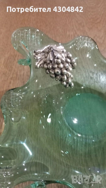 Стъклена купа с размери 17.5 см.на 17.5 см. Дълбочина 5 см. С посребрено грозде. Уникална изработка.
