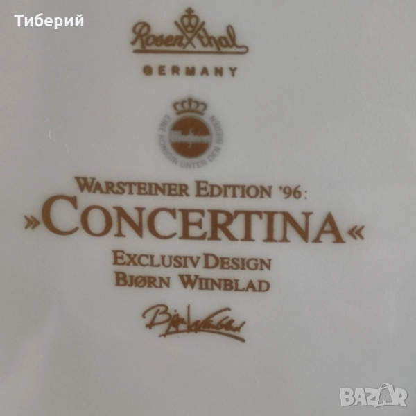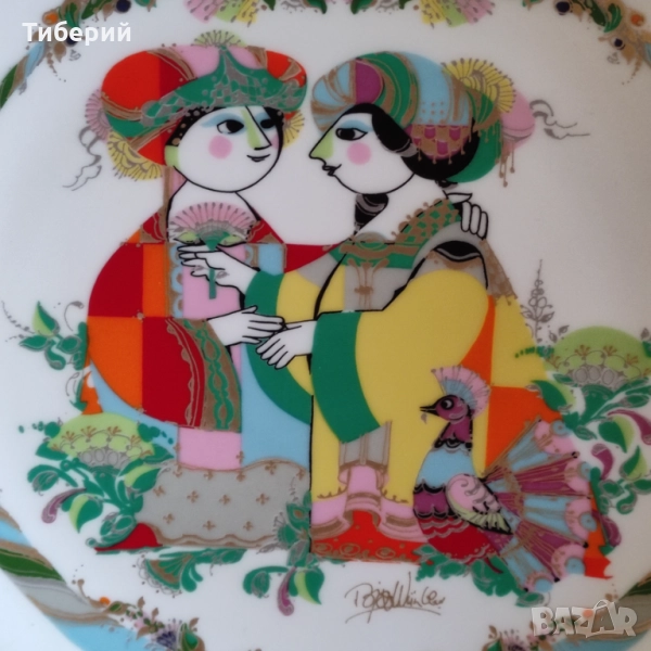 Винтидж чиния " Concertina Rosenthal" , лимитирана серия с етикет за производство- брой N 2, декор "Арабски нощи", от датския дизайнер Bjorn Winblad, без забележка с отлични цветове. Диаметър- 21 см. Цена-.15 По Еконт с 10% отстъпка.