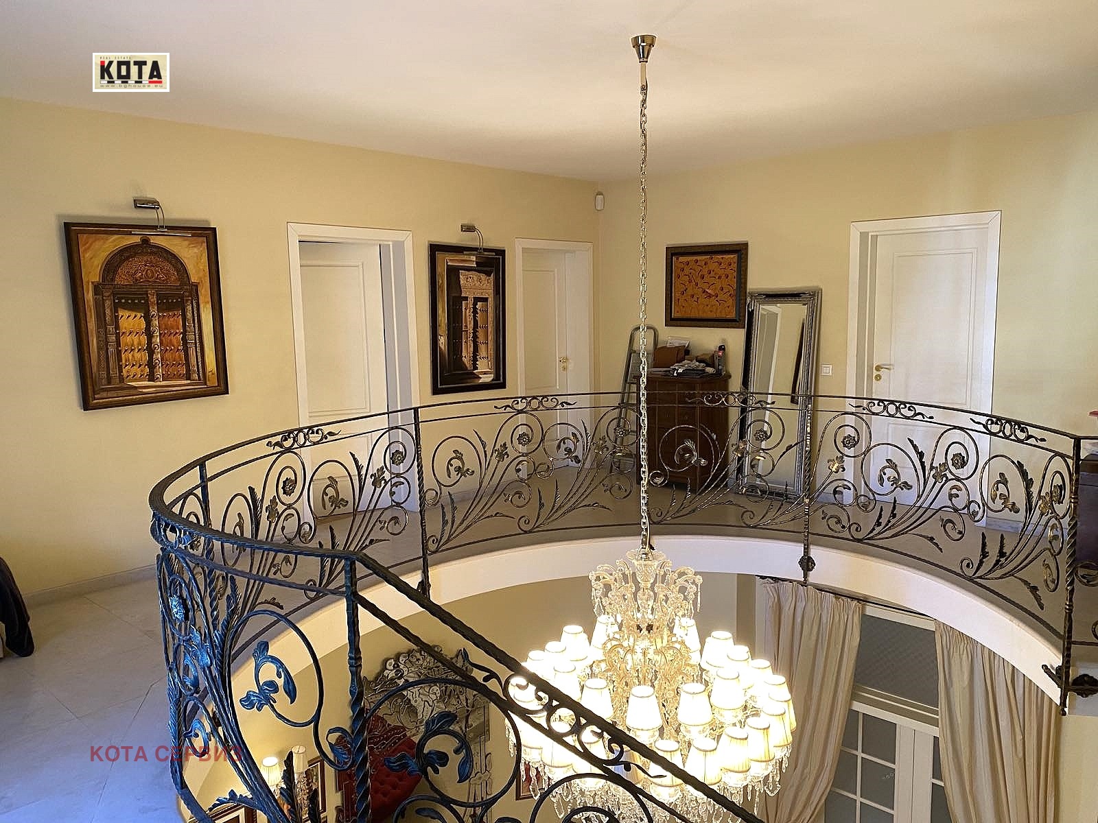 Етаж 2: Красиво стълбище извежда на втори етаж, където е родителската спалня със собствени гардероб и баня, както и още 3 спални и 2 бани. Всички спални са по около 20 кв.м и извеждат на две тераси с впечатляваща гледка.