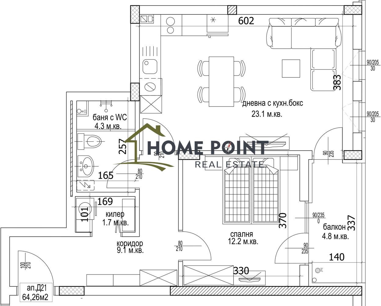 ХОУМПОЙНТ съдейства с всички необходими юридически и технически проверки на имота, организира всички етапи на сделката до нейното финализиране с нотариалното прехвърляне на имота.