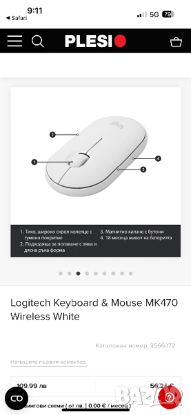Продават се безжични клавиатура и мишка logitech , в бял цвят.Нямат гаранция и кутия.Работят отлично. Logitech Keyboard & Mouse MK470 Wireless White