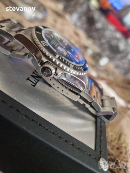 часовника има набити цифри на веригата и корпоса слет сваляане на веригата има набити натписи и цифри на оргинала доста запазен със голам резерв автоматик със бързо навиване корона на винт внос от германия ряадък модел има конкоренти но те неса еднакви