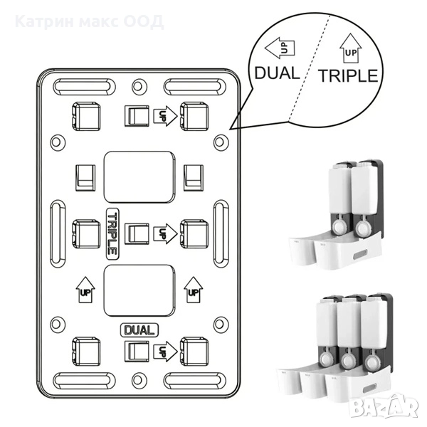 В комлекта има стикери, които могат да се използват за етикетиране на дозаторите според тяхното съдържание. За по-малки пространства този дозатор може да се използва и самостоятелно като дозатор за сапун на мивката. Вечен и хармоничен дизайн, елегантен външен вид, отлична функционалност