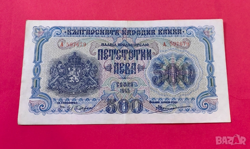 500 лева 1945 година България - серия А, снимка 1 - Нумизматика и бонистика - 52232031 500 лева 1945 година България - серия А, снимка 2 - Нумизматика и бонистика - 52232031 500 лева 1945 година България - серия А, снимка 3 - Нумизматика и бонистика - 52232031 500 лева 1945 година България - серия А, снимка 4 - Нумизматика и бонистика - 52232031 1/4