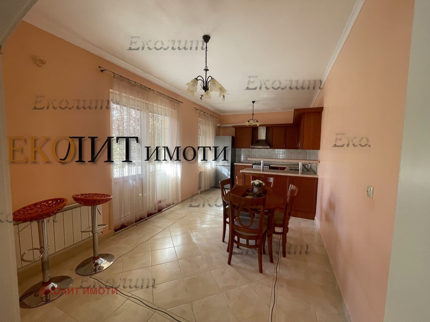 1 етаж: коридор, кухня и трапезария, отделна голяма дневна на 2 нива. 2 големи стаи и луксозно санитарно помещение.