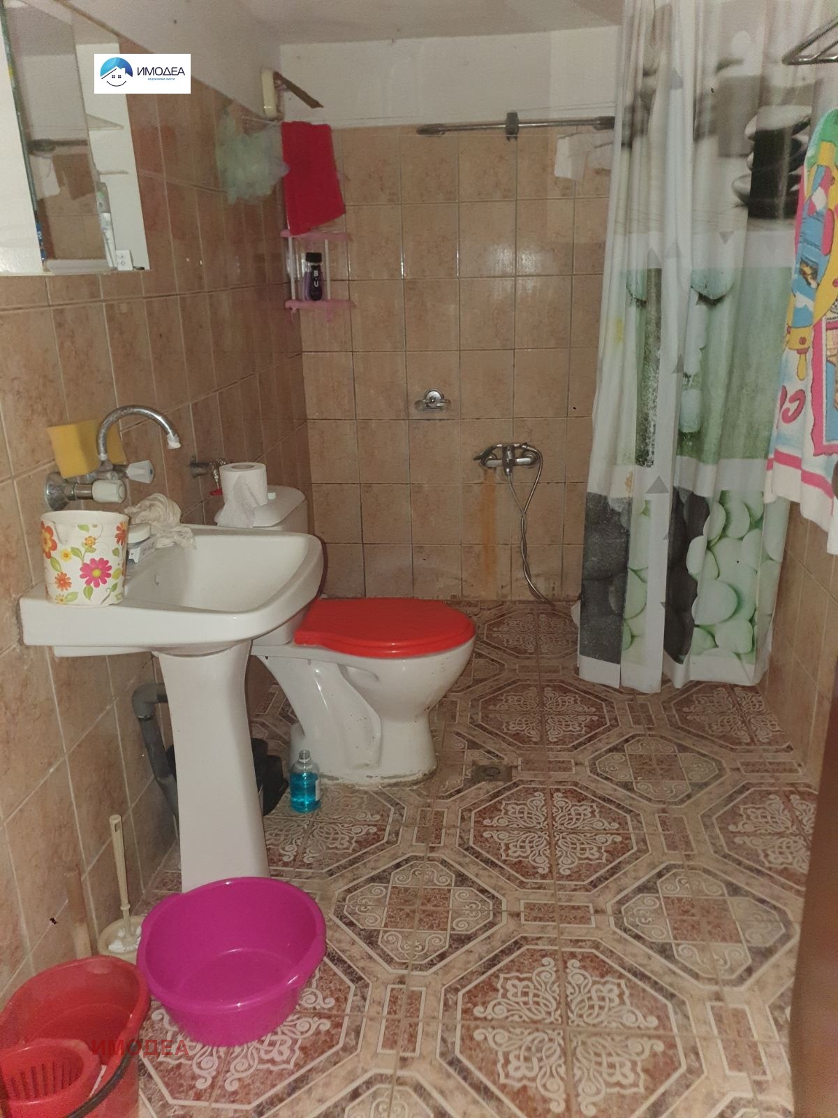 Имотът разполага с вътрешна баня с тоалетна и дворно място от 1 350 кв.м, подходящо за озеленяване и стопански нужди.