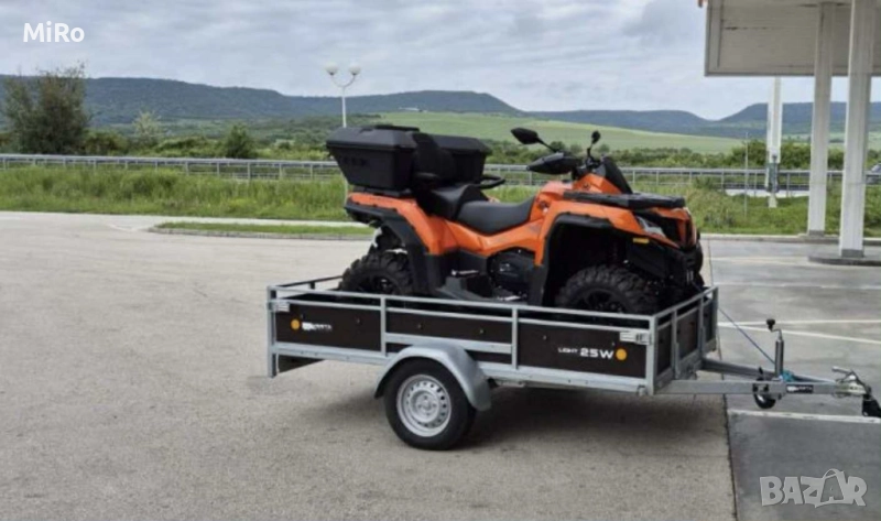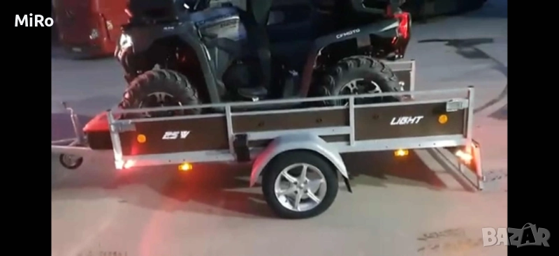 Давам ремарке под НАЕМ или с предварителна уговорка, мога да извърша дадена транспортна услуга! Допустимо общо тегло 750кг, полезен товар 550кг. Връзката към ел.инсталацията на теглещото превозно средство е стандартна букса със 7 пина. С абсолютно всички необходими документи за пътуване в страната и чужбина . Вътрешни размери /Д,Ш,В/ - 251x135x37см. Външни размери /Д,Ш,В/ - 272x185x93см. При необходимост има и допълнителни надстройки! Самосвално, което го прави удобно за товарене на мотори, ATV-та и селскостопанска техника без допълнителни пътеки или рампи. Подходящо за евро палета и друг вид товари. При необходимост предоставям колани за укрепване на товара. За ползване на ремаркето е нужна само любителска "B" категория и не е необходима допълнителна "E" или "C" категотия. Намира се в град Тетевен. Може да се достави в близките населени места. Цена 50 лева на ден! За повече дни, цена по договаряне!