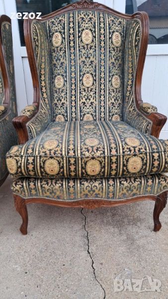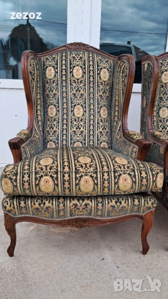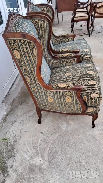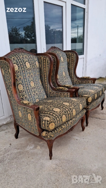 Луи 15 и 16.Широки и удобни с дълбока седалка,осигуряваща максимален комфорт.Модела е с подглавници-"Уши",за да си подпре седящия главата.Това така наречените "Wingback" кресла.