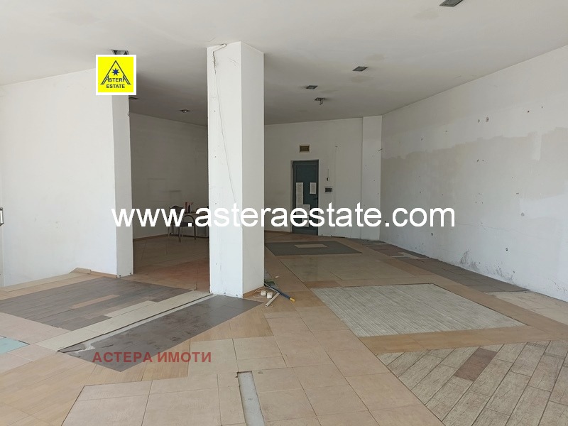 Помещението се отдава в следното състояние: Под плочки, стени и таван - шпакловани и боядисани, витрина с входна врата, електрическа и водопроводна инсталация, наличие на всички необходими комуникации, с партиди за ток и вода, напълно завършен санитарен възел, отделен вход за зареждане на стоки, английски двор. Помещението се намира на оживен булевард.