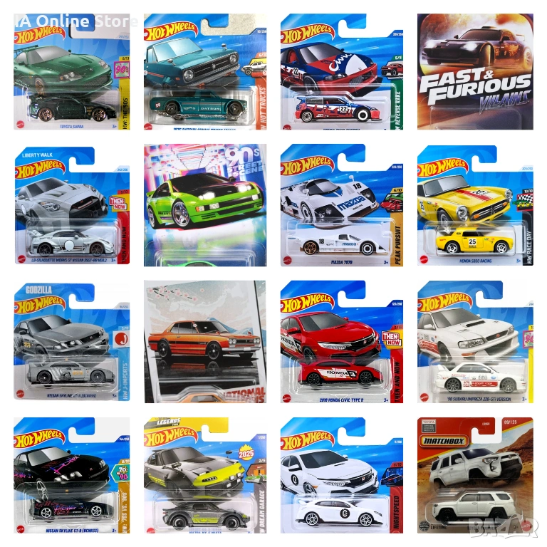 Hot Wheels Eclipse, Skyline GTR, R35, R34, Honda S2000, Civic, Impreza