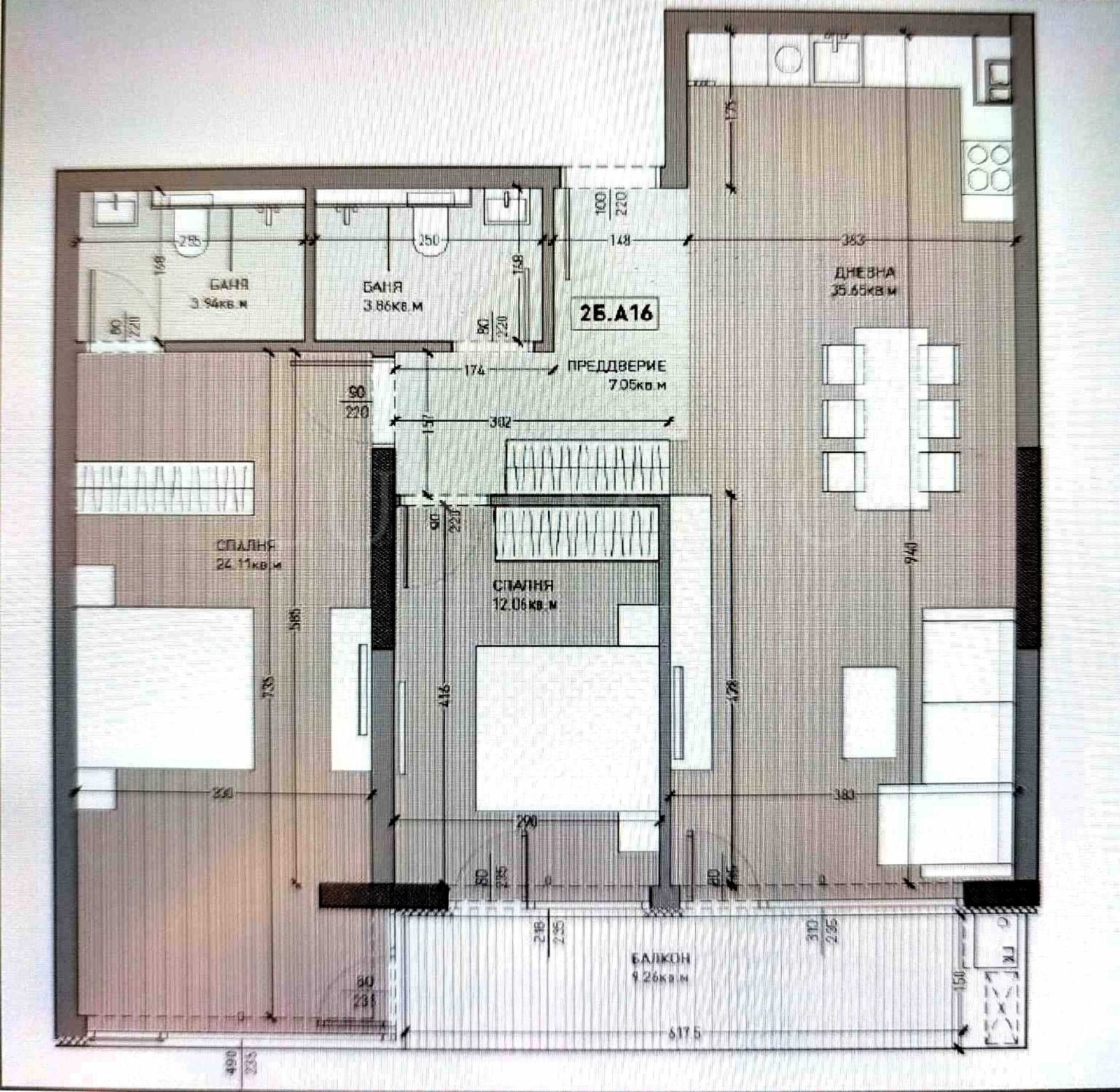 Разпределение на имота: обща площ 130.03 кв.м (нетна площ 109.30 кв.м + общи части 20.73 кв.м), разположен на пети етаж.