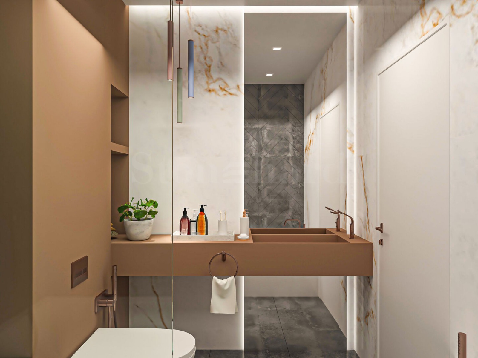 Визуализациите са примерни. Инвеститорът предлага примерни интериорни решения, като е обърнато особено внимание на детайлите, които да създадат усещането за топлина в дома и радост от новото жилище. Опитните дизайнери и архитекти на фирмата са готови да осигурят съпровод до пълна пространствена реализация на всеки индивидуализиран обект.