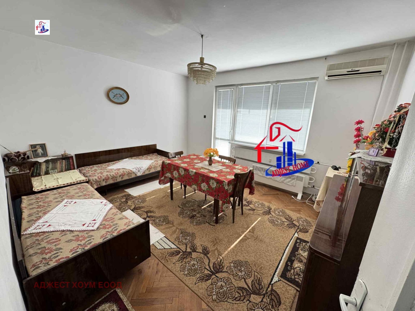 ~ Жилището е в добро поддържано състояние, подови настилки естествен паркет и мозайка, ПВЦ дограма, блиндирана входна врата.