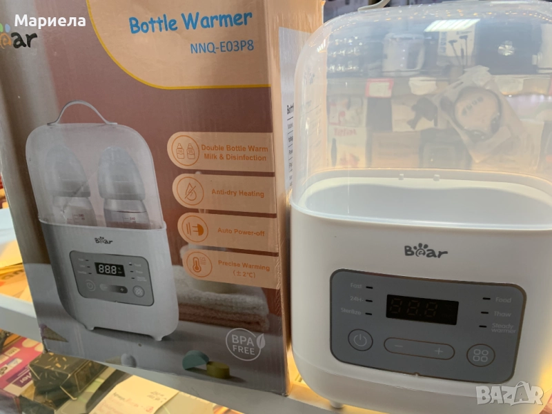 Дизайнът за двойна бутилка е съвместим с повечето марки и видове шишета. Интуитивният LCD контролен панел осигурява лесна работа, а функцията за автоматично изключване повишава безопасността. Със своята изключителна функционалност и лесен за употреба дизайн, това е чудесен подарък за бебе.