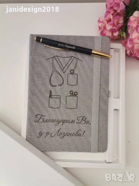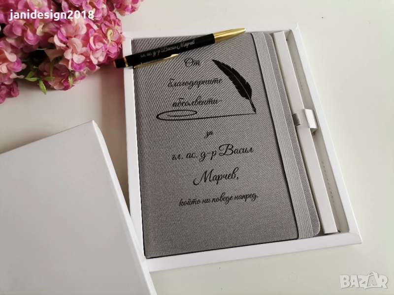 💎 Гравиран тефтер и химикал – персонализирани с име, лого или послание
