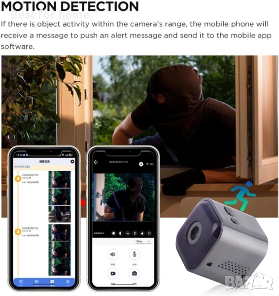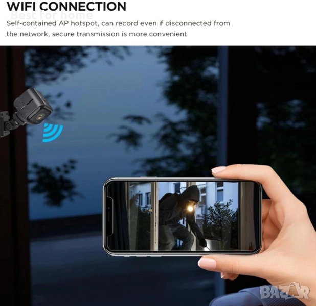 ОТЛИЧНА КАМЕРА ЗА ОХРАНА: Тази мини камера е проектирана да отговори на всички ваши нужди за сигурност, осигурявайки широкоъгълно видео в реално време денем или нощем, когато е свързана към 2.4GHz мрежа.