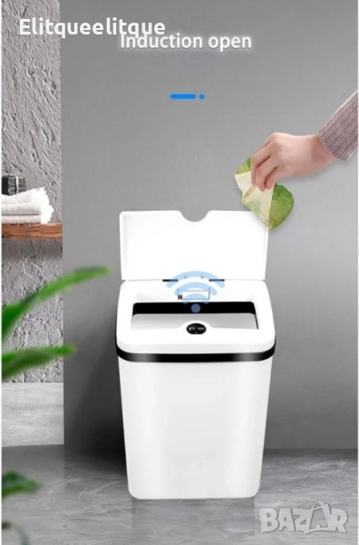 ?️? Кош за отпадъци със сензор за вдигане на капака, зарежда се с батерии: Практичен и хигиеничен контейнер, оборудван със сензор, който автоматично отваря капака при махване. Зарежда се с батерии за удобство и безжично използване. Идеален за бързо и чисто изхвърляне на отпадъци. ♻️?✨