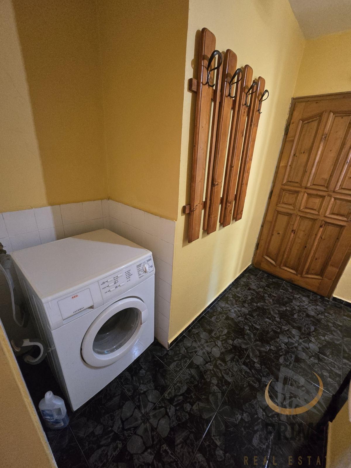 РАЗПРЕДЕЛЕНИЕ: Коридор с ниша за пералнята / марка AEG /, хол с кухня и трапезария, спалня, баня с тоалетна и остъклена тераса.