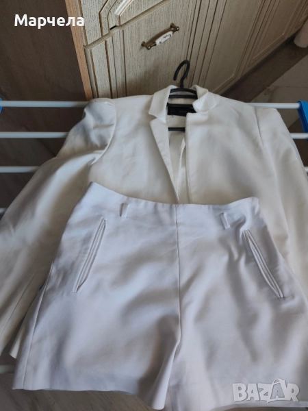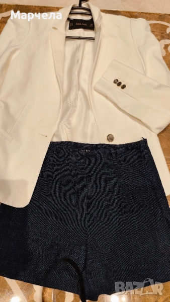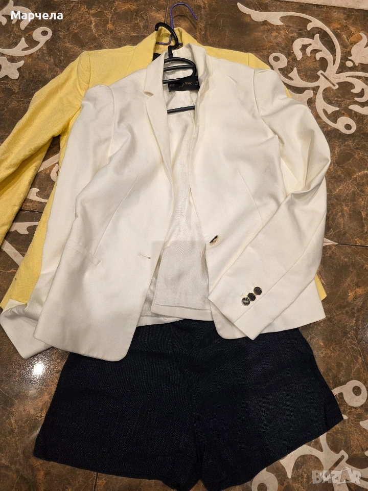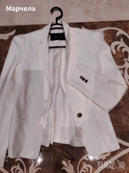 Бялото сако е на Зара е размер XС- цена 13евро ,мисля че отговаря и на С размер
