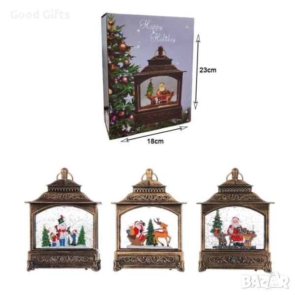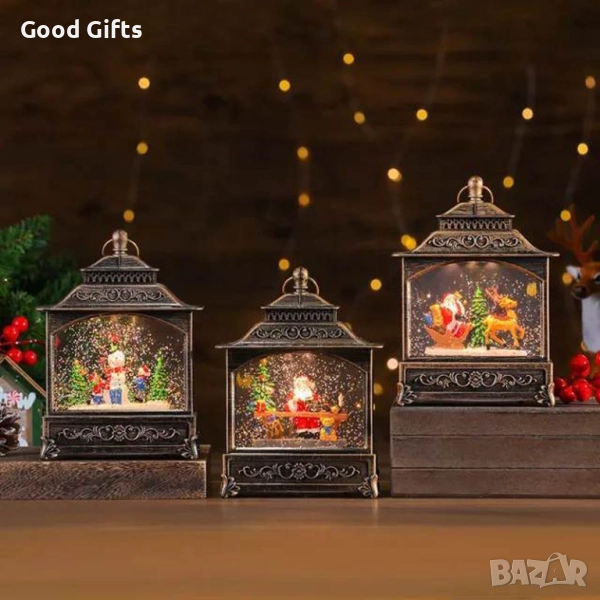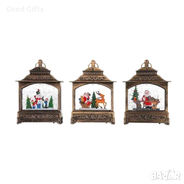 Внесете коледна магия и уют у дома с елегантната лампа фенер със снежен ефект и коледни фигури. Всеки модел пресъздава вълшебна сцена – Дядо Коледа, снежен човек, елени и елхи, осветени от мека LED светлина и обгърнати от вихър от блестящ сняг.