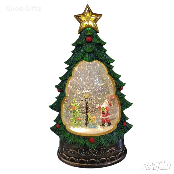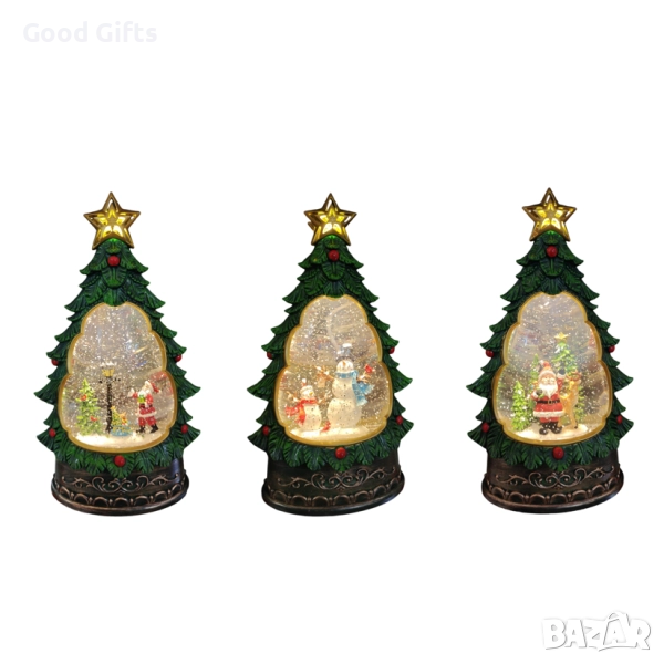 Ефектният въртящ се сняг и нежната светлина придават живот на красивите коледни сцени вътре в елхата – Дядо Коледа с подаръци, Снежни човеци или Дядо Коледа с еленче. Това е изключителна украса за дома, офиса или витрината, както и оригинален подарък, който ще очарова всеки.