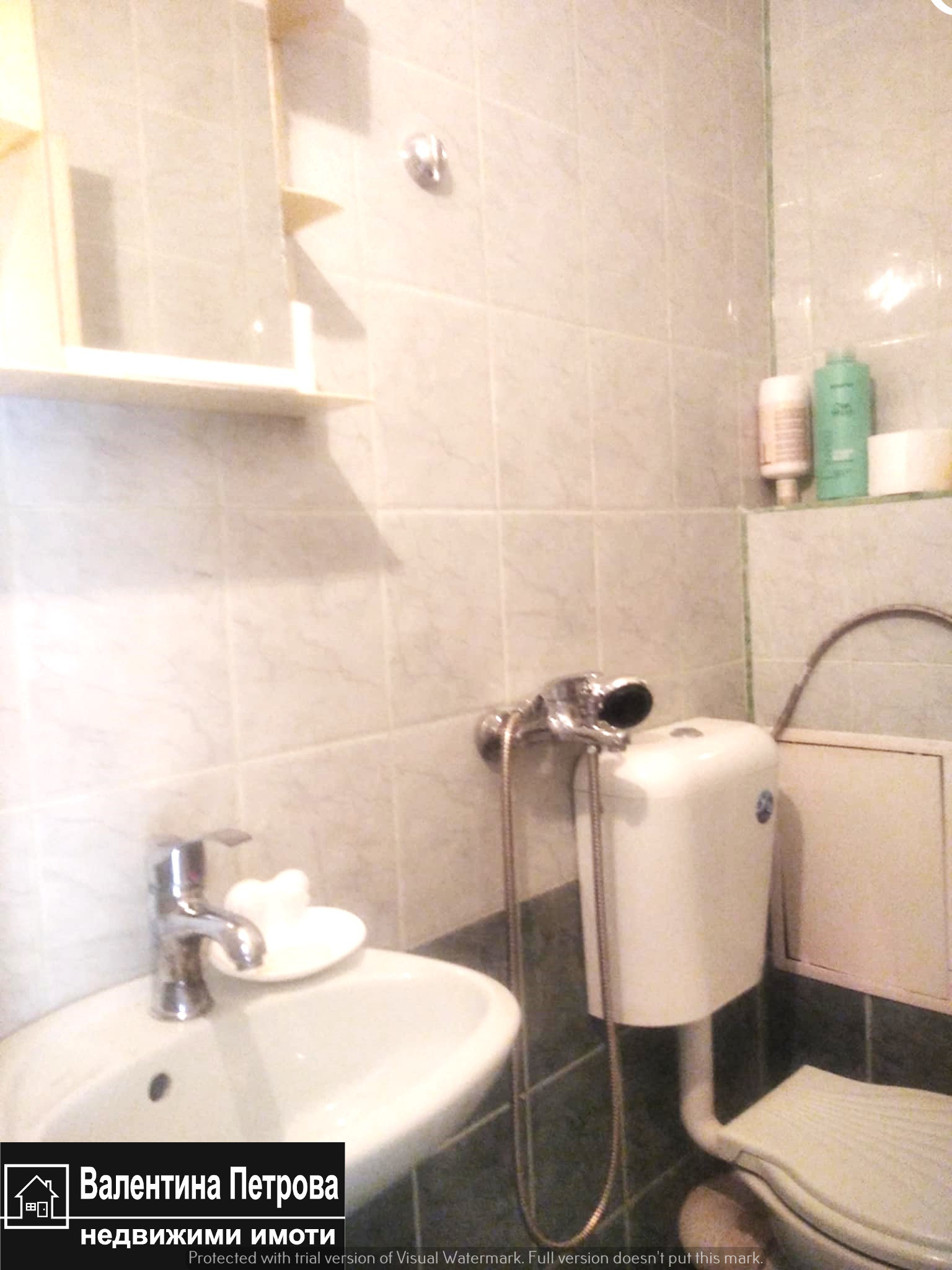 Недвижими имоти - Валентина Петрова предлага ЕКСКЛУЗИВНО едностаен апартамент в тухлена сграда с асансьор, с площ - 34 м2, на ет.6, в близост до спирка Оборище (Кръговото). Разпределението на имота е входно антре, кухня с тераса, спалня, баня и тоалетна. Имота е обзаведен, в газифицирана сграда, на комуникативно място, в близост до спирки, училища, големи магазини, като е подходящ както за живеене, така и за инвестиция, с цел отдаване под наем. КЛЮЧ.