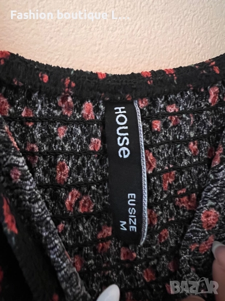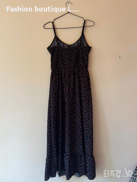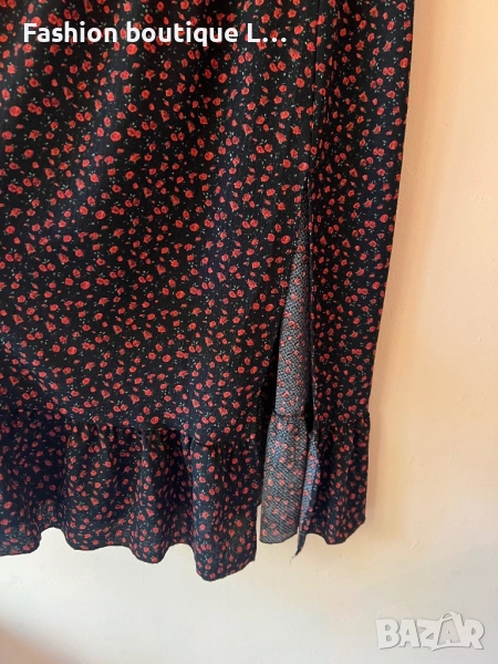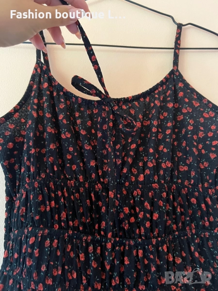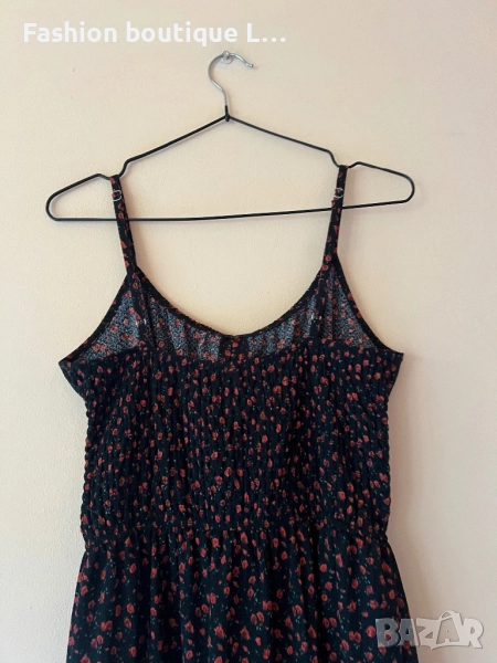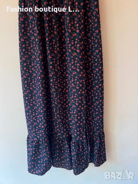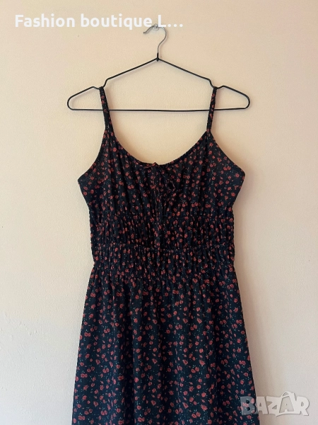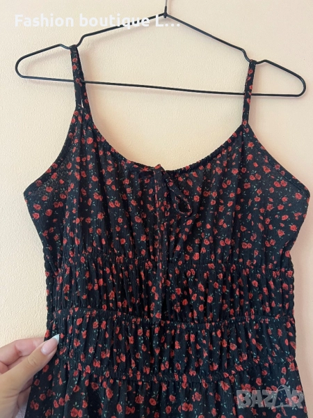 Черна дълга рокля с десен на червени цветя вталена M размер с регулиращи се презрамки на House 👗 → Обява 52235804
