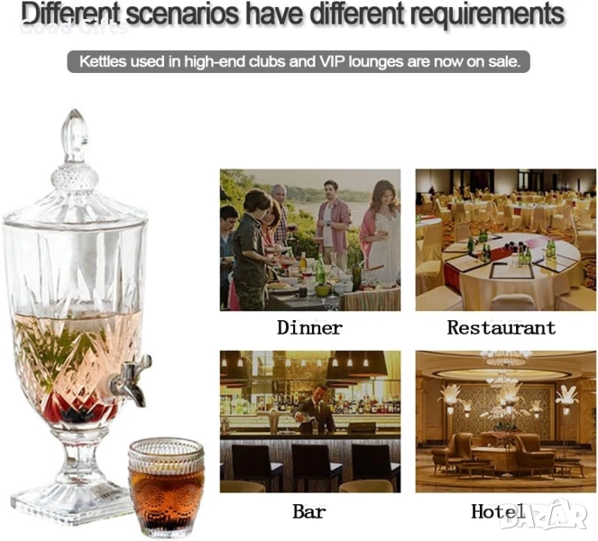 Добавете изтънченост и стил към вашата трапеза с този луксозен стъклен диспенсър за напитки 3L – елегантно решение за сервиране на сокове, лимонада, ароматизирана вода, вино или коктейли. Подходящ за дома, ресторанти, хотели и специални събития, той впечатлява с класически дизайн и кристална прозрачност, които придават изискан вид на всяко събиране.