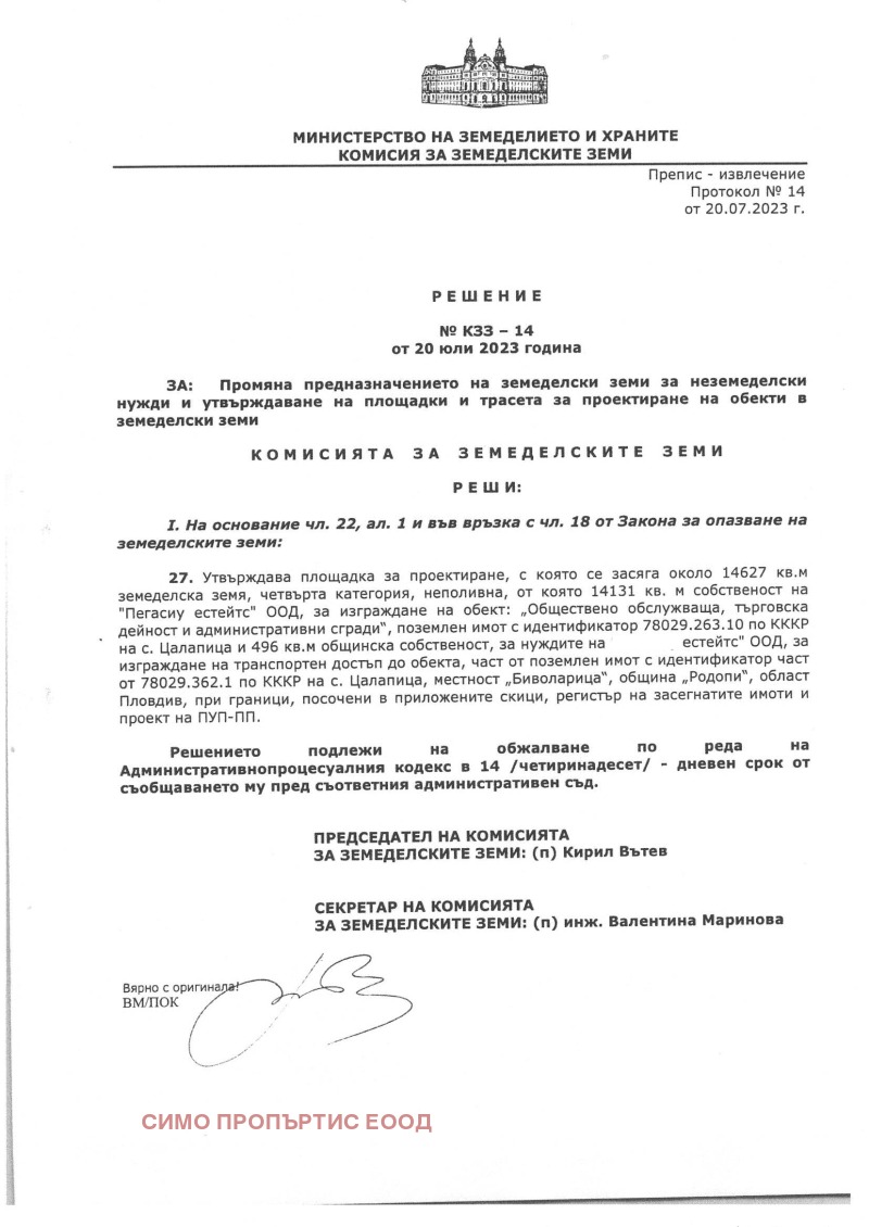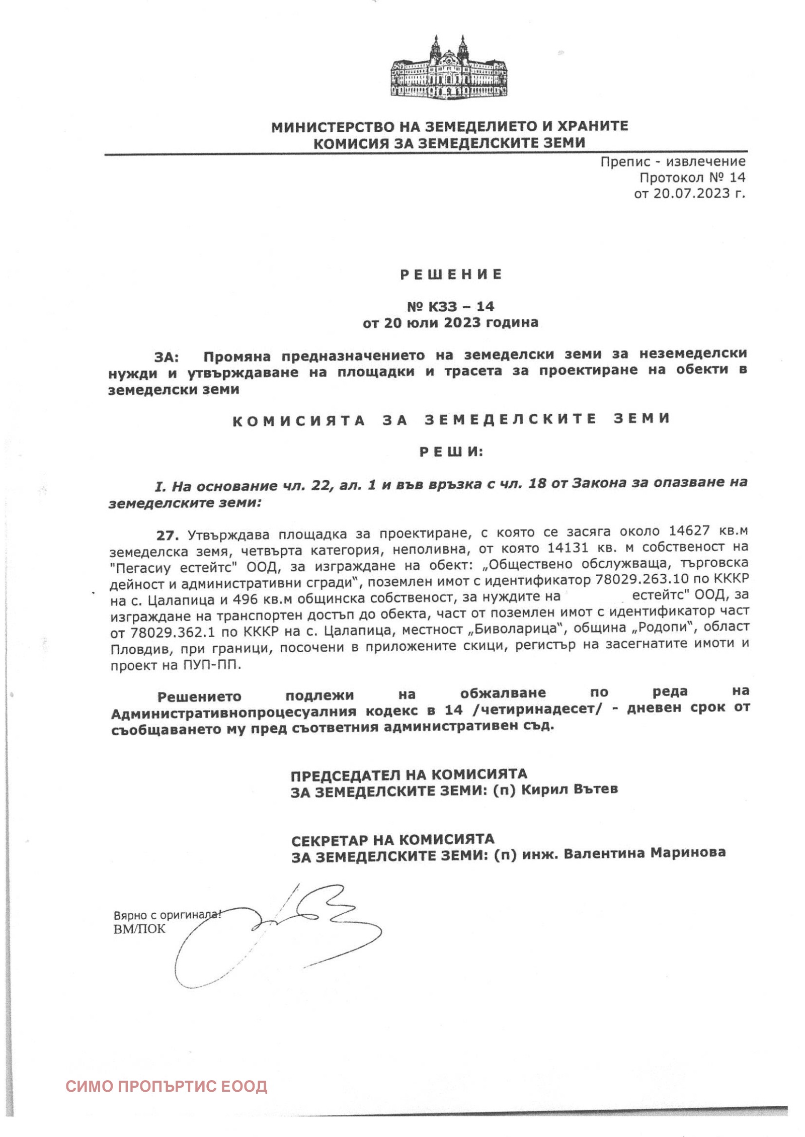 Продава се имот с площ 14 131 кв.м. Имотът се намира в землището на с Цалапица. Има голамо лице на главния асфалтов път Пловдив Пазарджик Пазарджишко шосе. Имотът има правилна форма и е предназначен за търговско, промишлено или производствено строителство. Има не завършена процедура по регулация. Подходящ е за склад, бензиностанция, фабрика, представителство, шоурум, сервиз и мн. др. Овен за собствено ползване този имот е много подходящ и за инвестиционни цели стратигическото си местоположение . Запознати сме с цялата история от придобиването на собствеността на имота, управлението през годините и сегашния му статут и ситуация. Агенцията ни се намира в пряк контакт със собственика на имота и бихме могли да договорим добри и гъвкави условия за сделка. Един собственик!