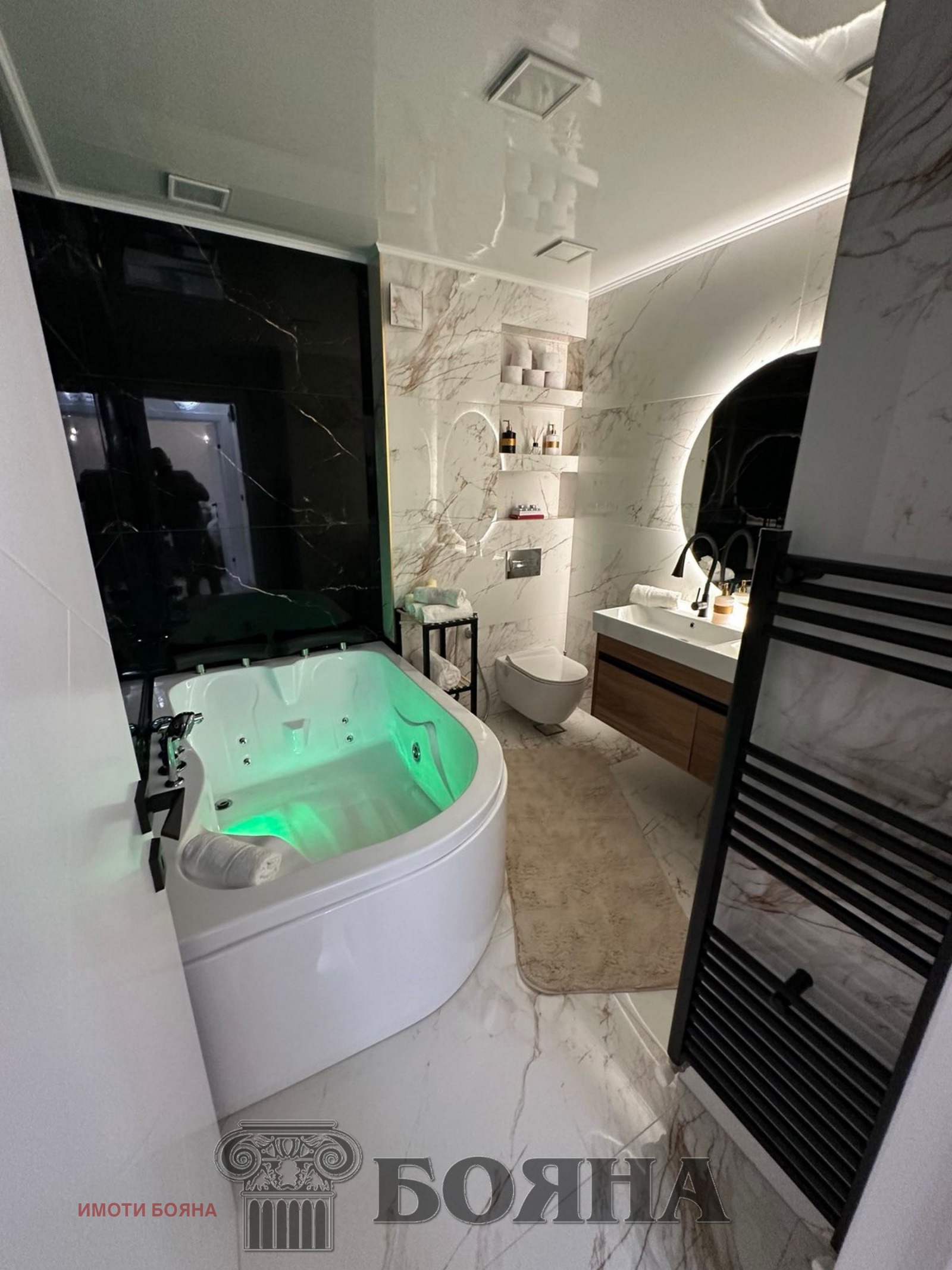 Апартаментът е изцяло газифициран, като е поставено и подово отопление.