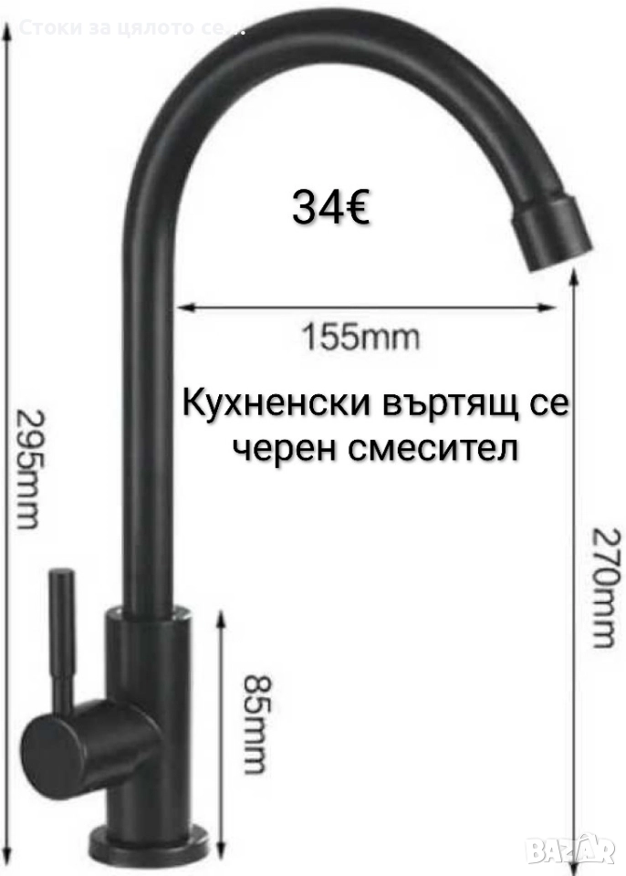 Кухненски въртящ се черен смесител - 34€