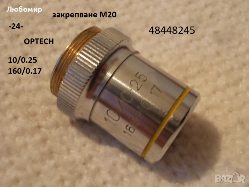 24. Обектив 10/0.25 микроскоп Optech - използвано - 30 лв.