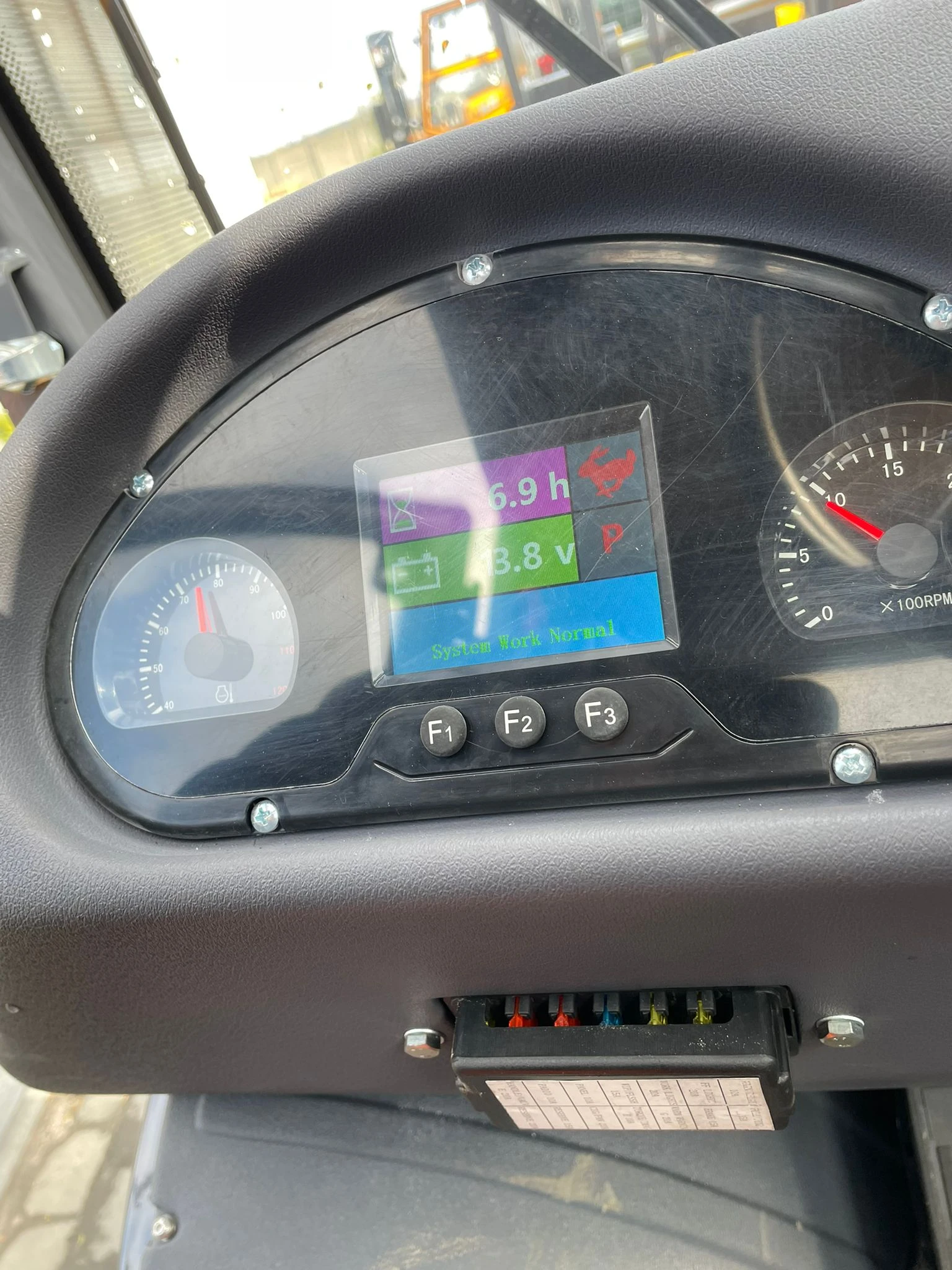 телескопичен товарач, проектиран за интензивна употреба в строителството, селското стопанство и промишлеността. Той съчетава висока мощност, прецизност и маневреност, представяйки се добре както в ограничени пространства, така и в труден терен. Двигател Perkins Евро 5 Машината се задвижва от двигател Perkins Euro 5 с мощност 18, 4 kW (2200 об/мин). Характеризира се с нисък разход на гориво (≤ 230 г/кВт. ч), висока безшумност при работа и съответствие със стандартите за емисии на отработени газове. 4× 4 задвижване и прецизна хидравлика Хидравличното задвижване на четирите колела и асистентът на задния мост осигуряват отлично сцепление и маневреност. Налягането в задвижващата система е 35 MPa, а работното налягане е 24 MPa, което гарантира ефективна и прецизна работа с прикачното оборудване. Комфорт и безопасност Машината е оборудвана с електрическа ръчна спирачка, хидравлична аварийна спирачка и модерно джойстиково управление. Система за бързо свързване и функция за самонивелиране опростяват смяната на прикачните устройства. Производителност и работни параметри Товарачът има обем на кофата от 0, 3 м³ и ширина 1588 мм. Товароподемността му до 1400 кг и височината на повдигане до 4010 мм позволяват удобно боравене с материали без използването на допълнително оборудване. Компактен размер и маневреност Общата дължина с кофата е 3350 мм, ширина 1588 мм и височина 1955 мм. Радиусът на завиване от 3560 мм позволява работа в тесни пространства. Гумите с размери 26*12-16. 5 (ширина 275 мм, диаметър 658 мм) осигуряват стабилност на неравен терен. Технически данни: Двигател: Perkins EURO 5 Тип двигател: Редови, водно охлаждан, трицилиндров дизелов двигател Номинална мощност: 18, 4 kW Скорост на въртене: 2200 об/мин Разход на гориво (стандартни условия): ≤ 230 г/кВт. ч Тегло: 2800 кг Максимална скорост на движение: 18 км/ч Движение: Хидравличен мотор, задвижване на четирите колела Задвижваща помпа: PWG Работна помпа: Zaneda Кормилна система: Заден мост с хидравлично сервоуправление Задвижваща система: 35 MPa; 46 куб. см Работна система: 24 MPa; 22 л/мин Ръчни спирачки: Електрическа ръчна спирачка Работни спирачки: Хидравлична спирачка за спиране на маслото Система за бързо свързване: Да Джойстик: Да Самонивелиране: Да Капацитет на кофата: 0, 3 м³ Ширина на лъжицата: 1588 мм Капацитет: 1400 кг Модел на гума: 26*12-16. 5 Ширина на гумата: 275 мм Диаметър на гумата: 658 мм Минимален радиус на завиване: 3560 мм Междуосие: 1720 мм Междуосие: 1150 мм Обща дължина (кофата на земята): 3350 мм Обща височина: 1955 мм Обща ширина: 1588 мм Максимална височина на повдигане: 4010 мм