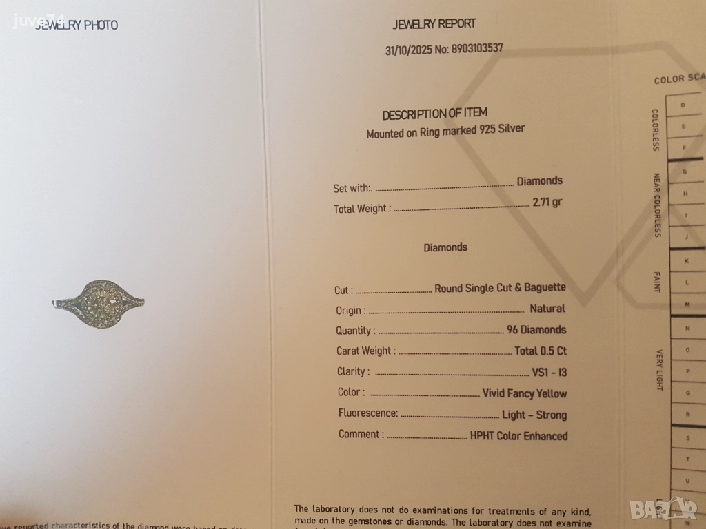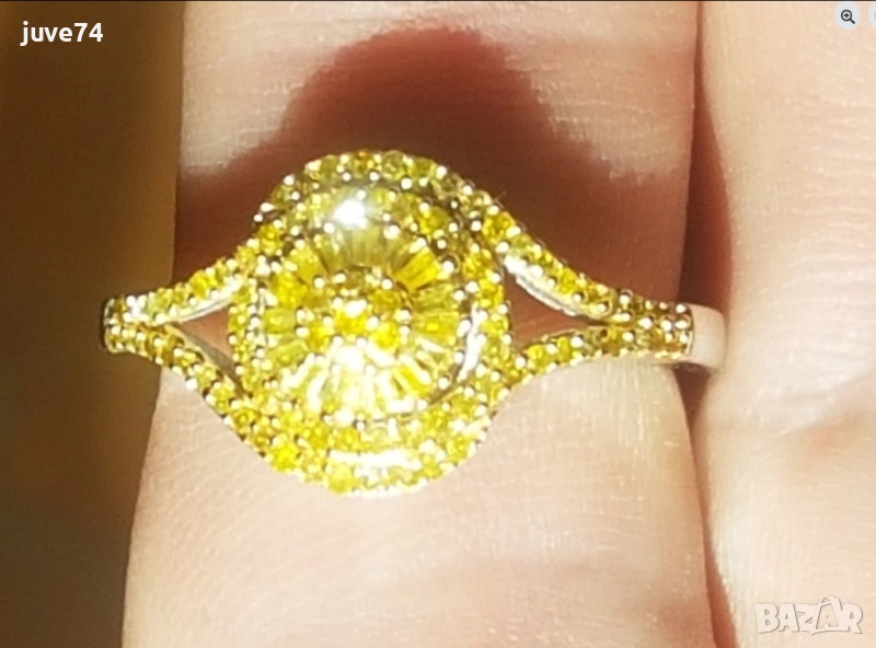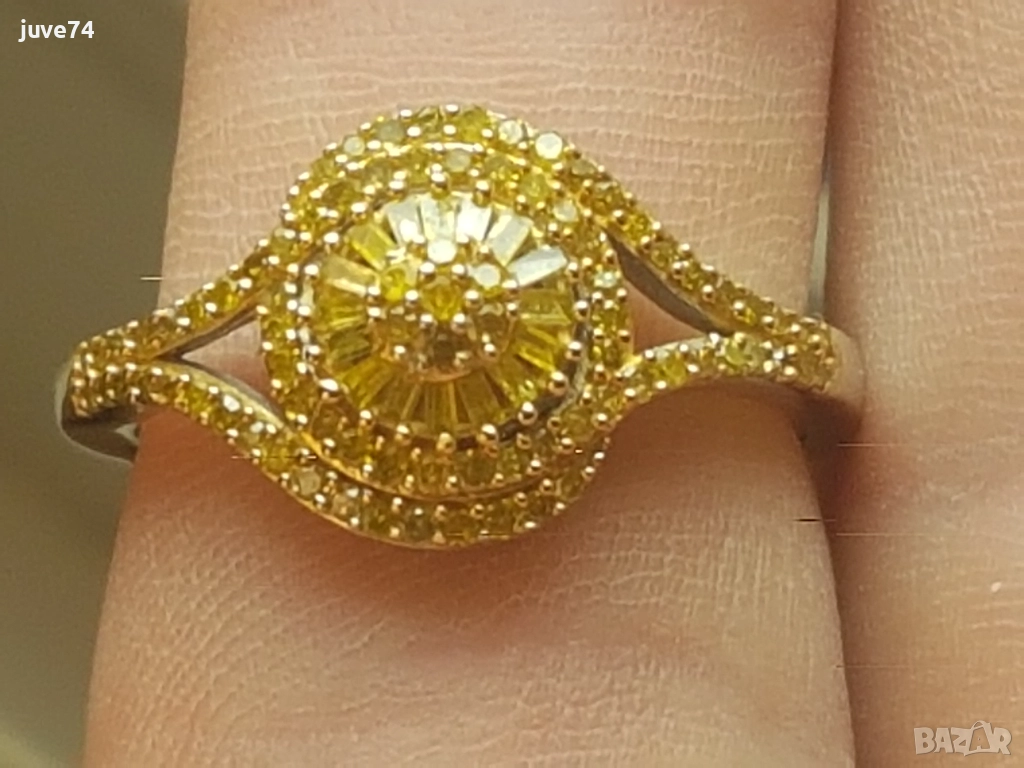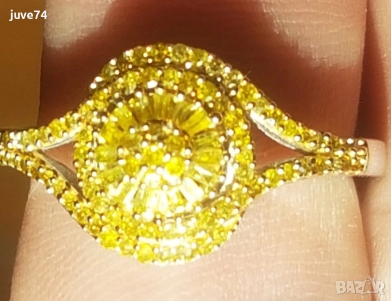 СРЕБЪРЕН ПРЪСТЕН С ЕСТЕСТВЕНИ ЖЪЛТИ ДИАМАНТИ СЕРТИФИКАТ → Обява 52236917