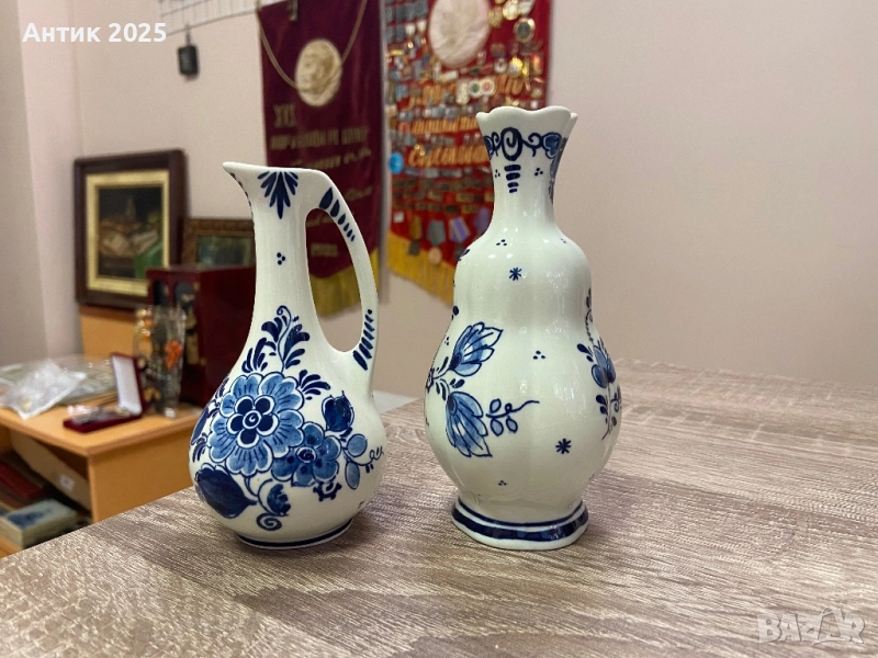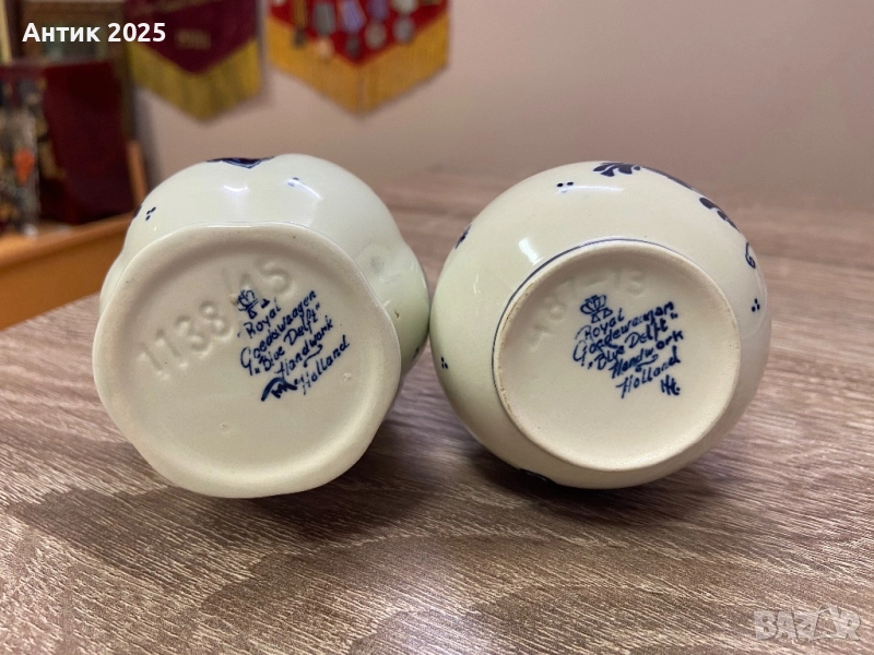 Продава се комплект от две винтидж вази Royal Goedewaagen, изработени в прочутия стил Blue Delft и ръчно рисувани от майстори в Холандия. Всяка ваза има оригинални маркировки, удостоверяващи автентичността, както и индивидуален номер. Royal Goedewaagen е една от най-старите европейски фабрики за керамика с над 400-годишна история, която поддържа традициите на ръчното производство и декорация.