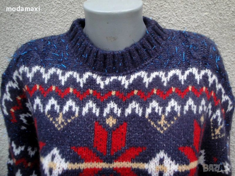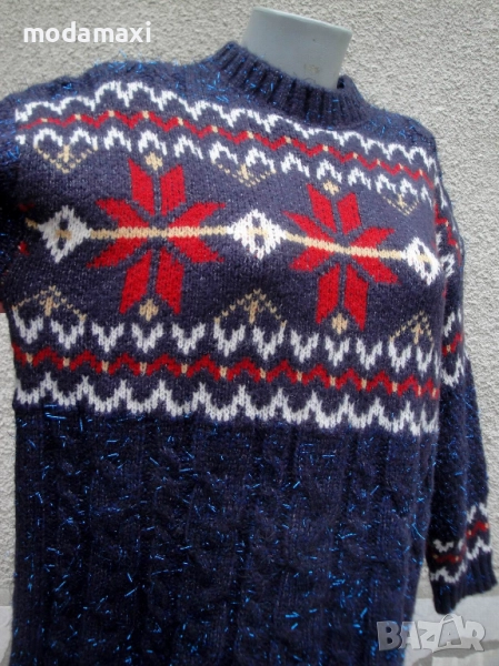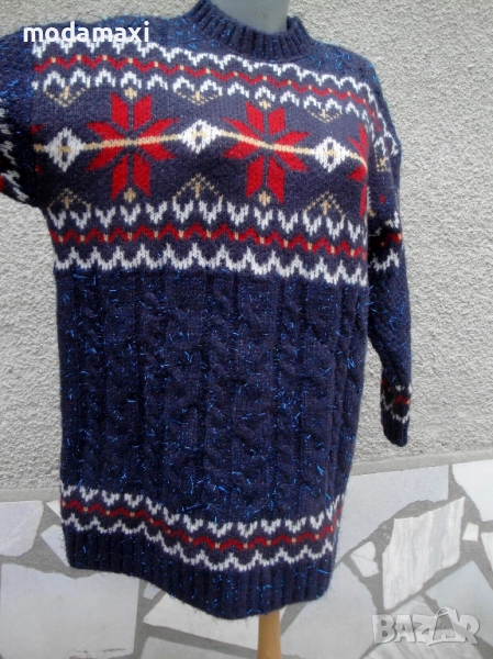 Много красив пуловер със синя блестяща нишка