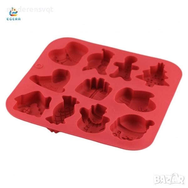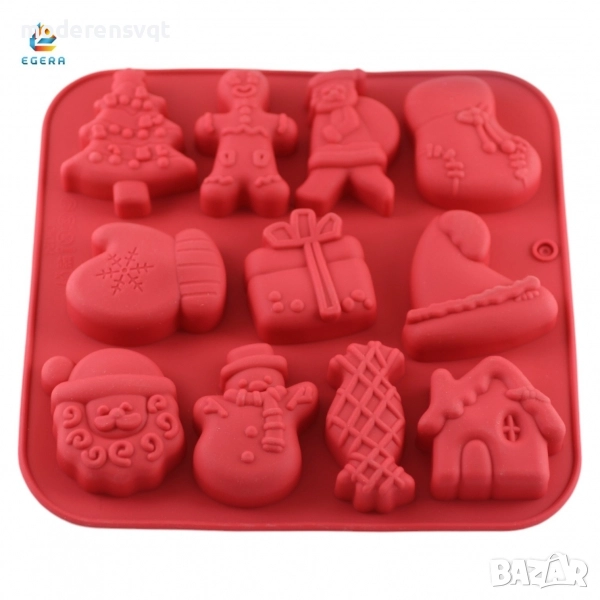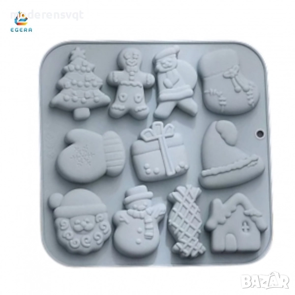 Силиконова форма за коледни сладки и шоколад силиконов коледен молд с 11 различни фигурки