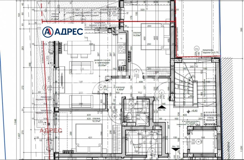 Адрес недвижими имоти продава апартамент който се състои от коридор, баня с тоалет, дневен тракт с кухня, тераса, две спални и избено помещение. Към него има възможност за закупуване на външно паркомясто, също така са предвидени 2 паркоместа за електроавтомобили.